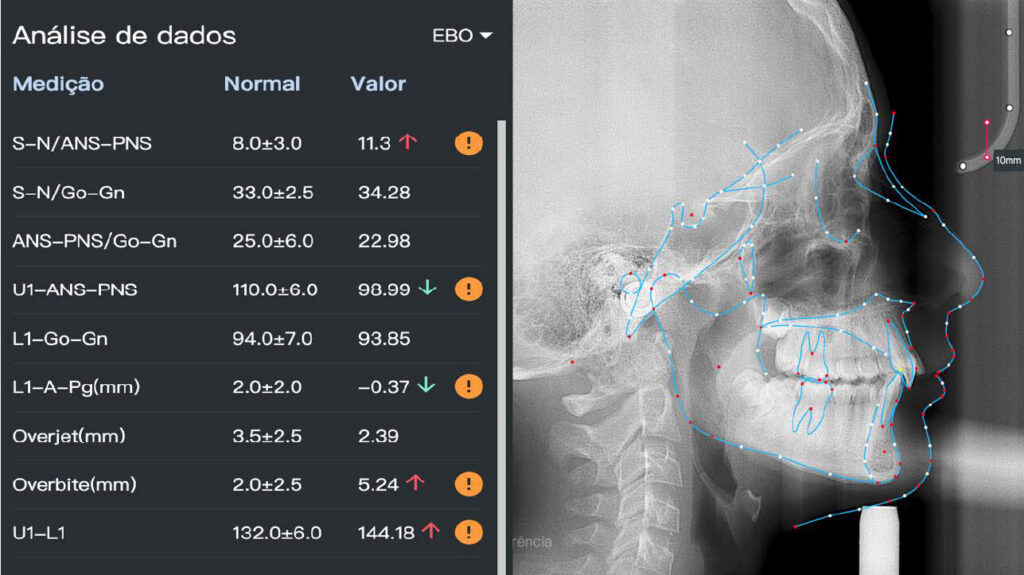The treatment followed the Angel Aligner A6 mandibular advancement protocol, with the primary objective of achieving early correction of the sagittal discrepancy while simultaneously addressing dental alignment and transverse coordination.