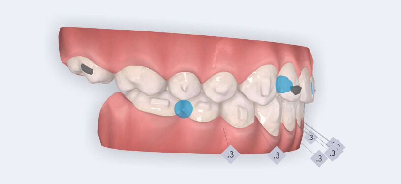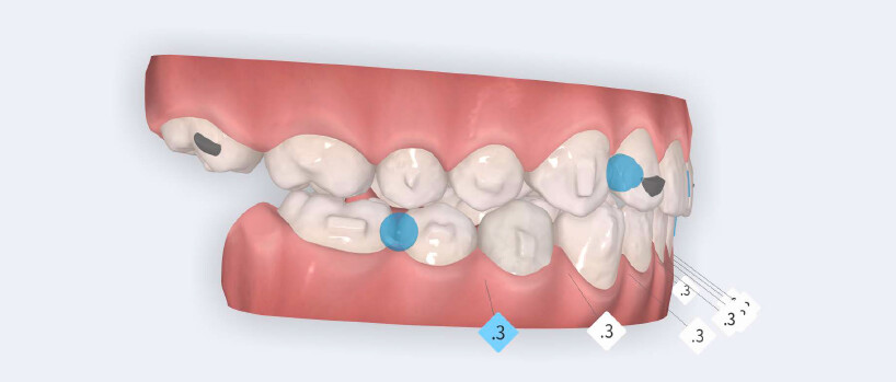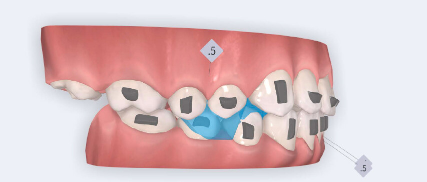 • Initiation of mandibular advancement from the 4th aligner using mandibular advancement blocks;