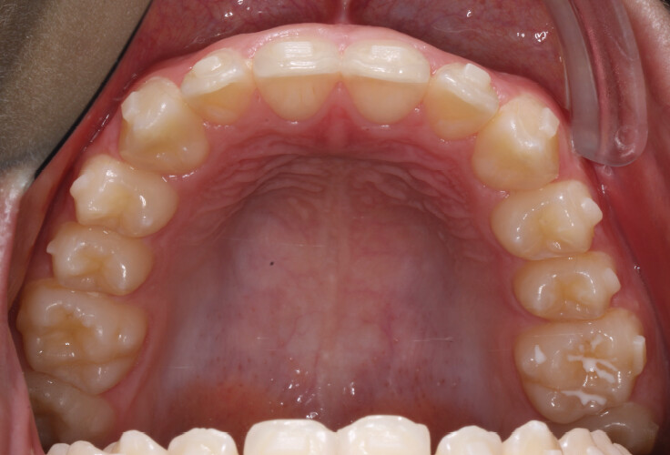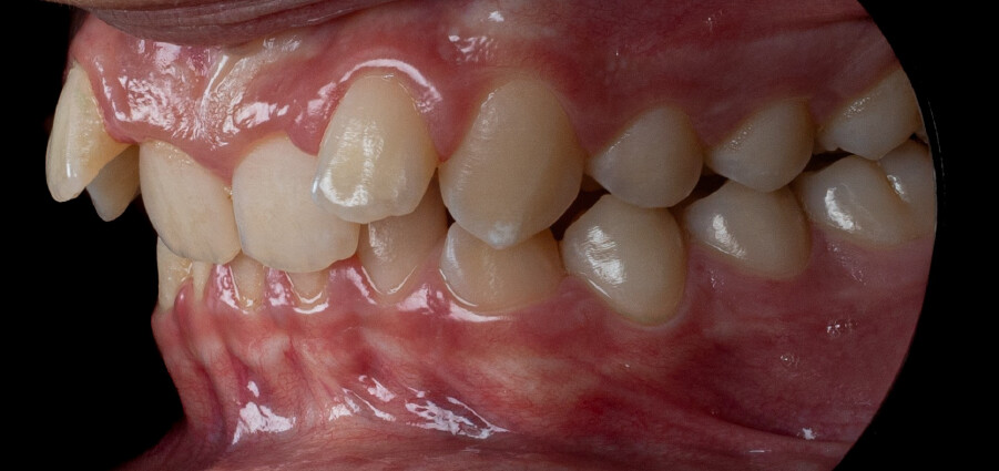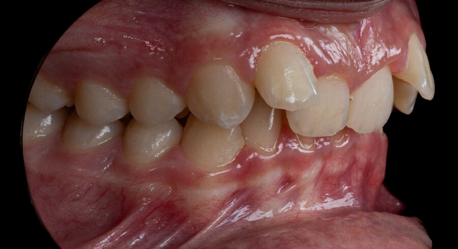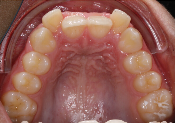 Chief complaint: The patient’s primary concerns were the gummy smile associated with a deep bite, and the limited space available for anterior alignment. He also expressed dissatisfaction with the position of the maxillary lateral incisors, describing them as being positioned “too high.”