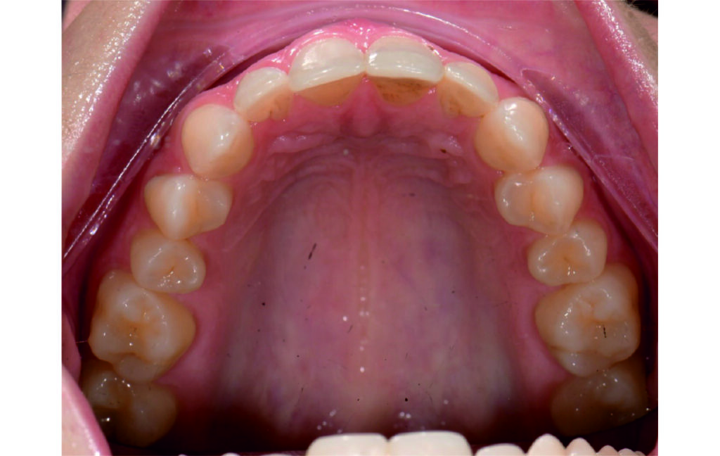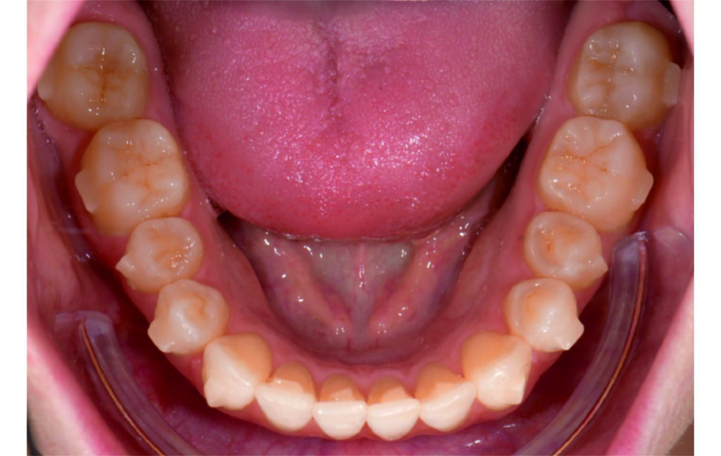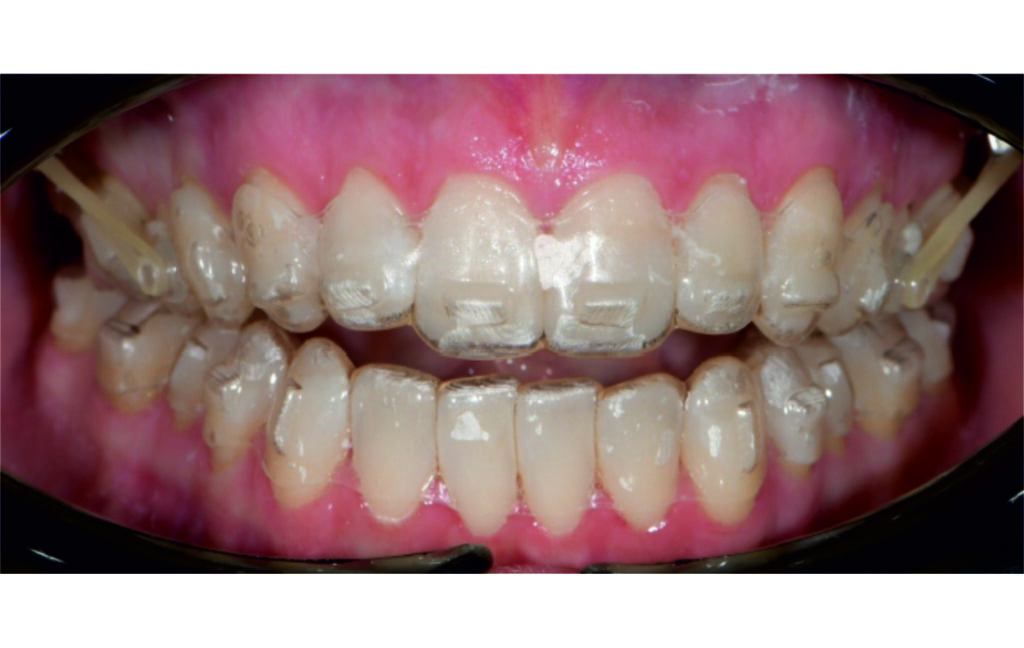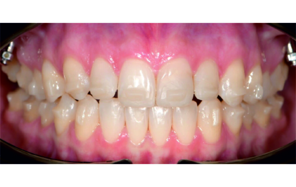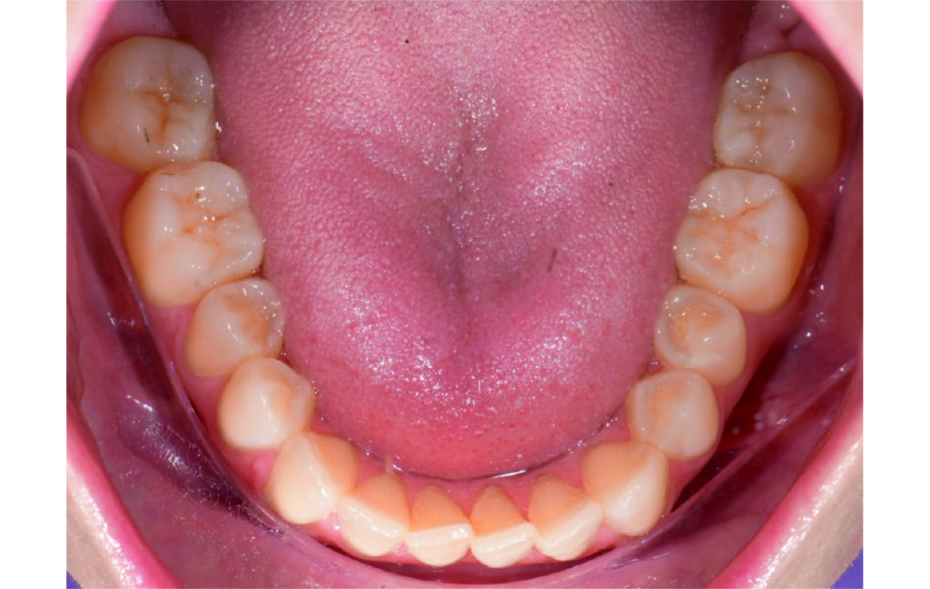 IPR of the lower anterior segment was performed to address Bolton discrepancy.