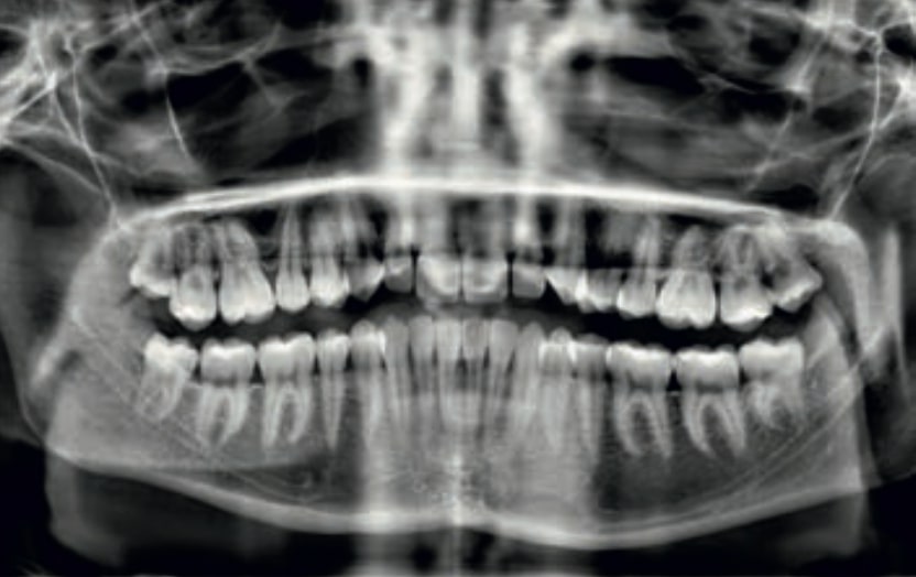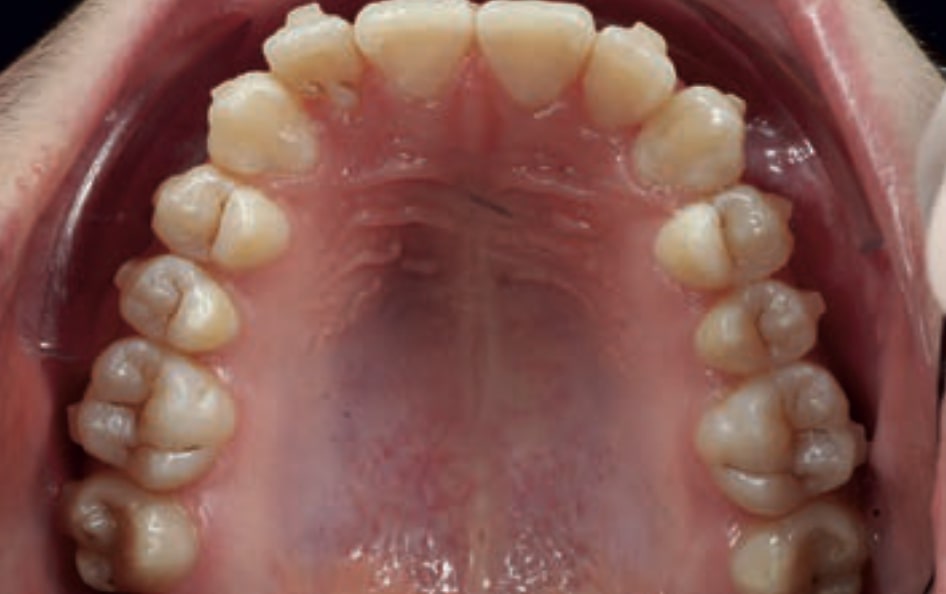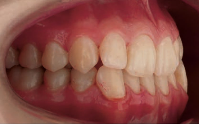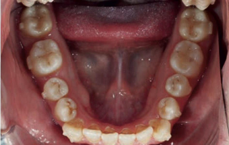 - Dental Class III, 2 mm deviation of the lower midline to the left. 33 and 43 out of the arch and the cortical bone.