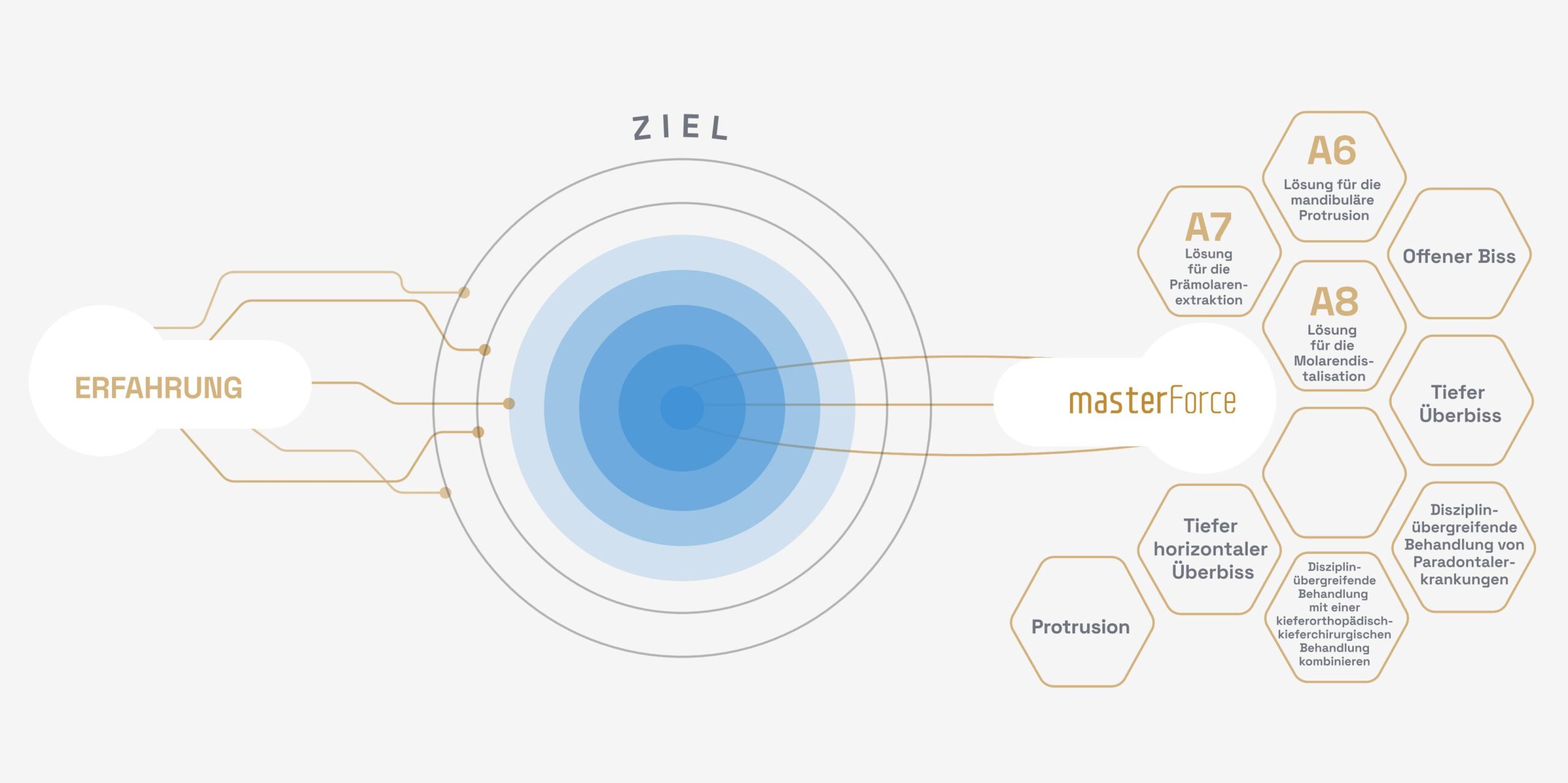 Mit der masterForce-Plattform wird das biomechanische Prinzip der Kieferorthopädie bei der Behandlungsplanung angewandt, um eine präzise orthodontische Druckausübung und eine steuerbare Zahnbewegung zu gewährleisten. Hierdurch wird die kieferorthopädische Wirksamkeit verbessert und die Behandlungsdauer verkürzt.
